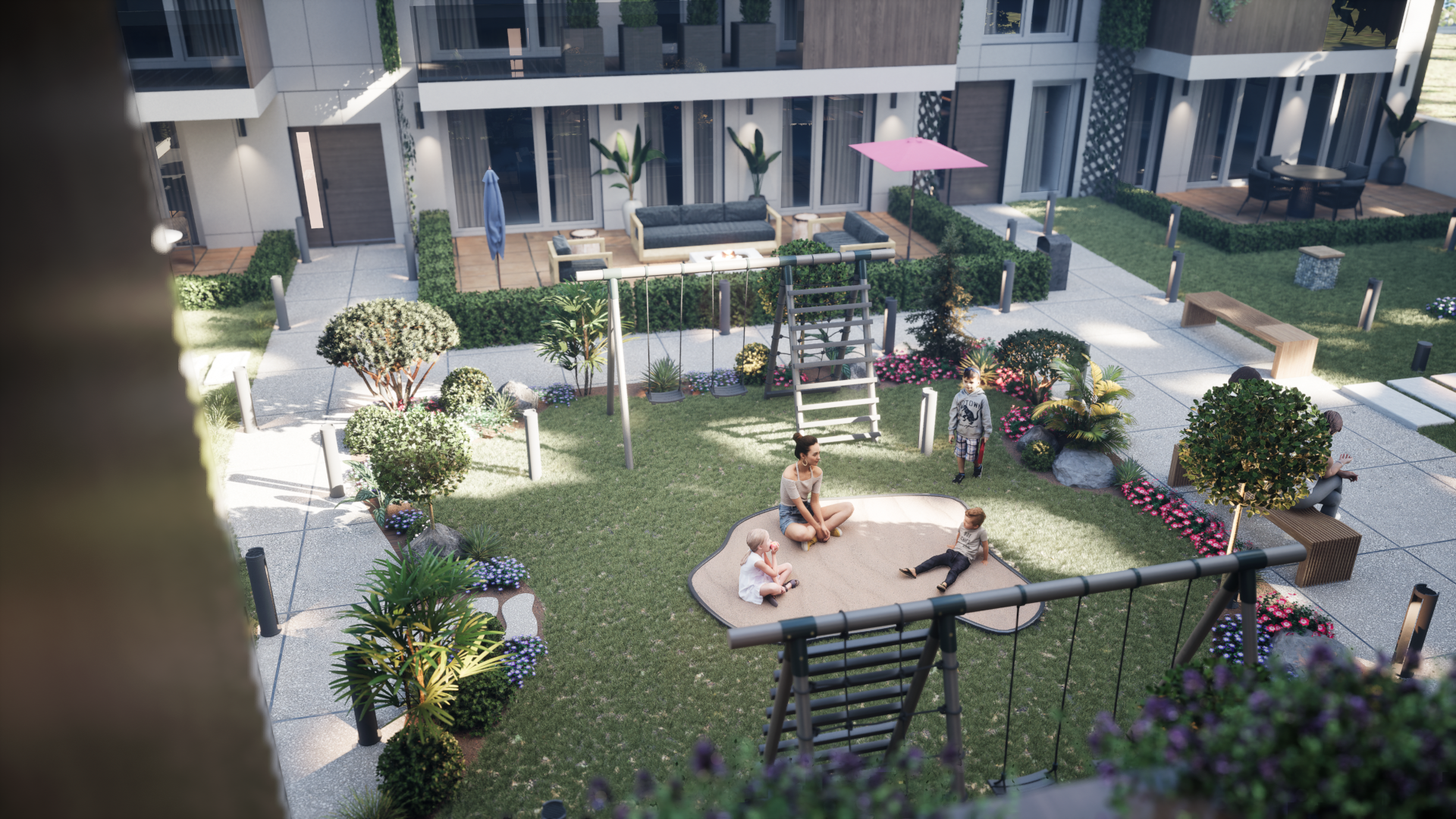 - Grün & Gemeinschaft: Begrünte Außenflächen und eigener Kinderspielplatz.