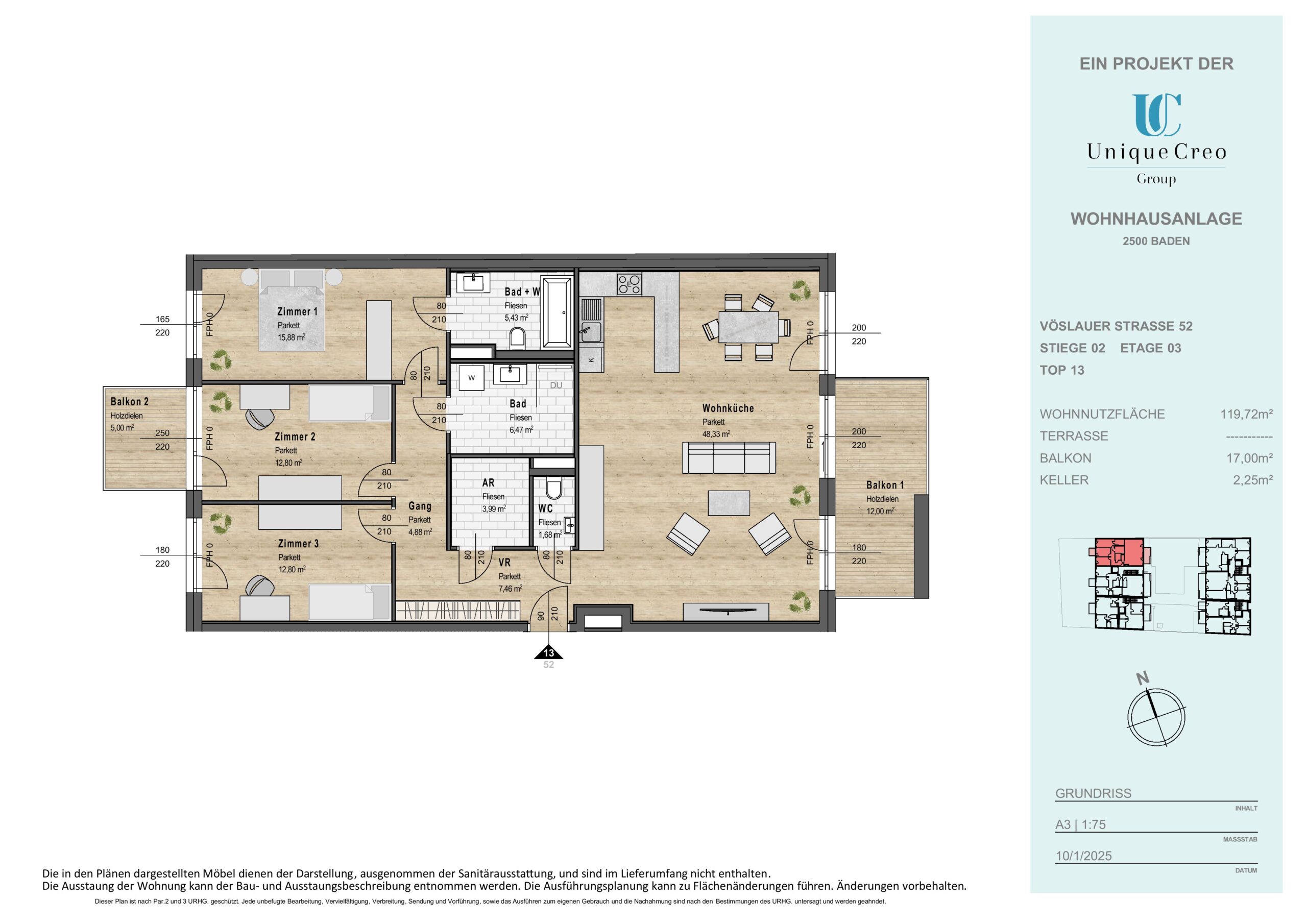 🟢 Top 013/52  Stiege 02 / E03 119,72 m² 17 m² 752.979 € JPG