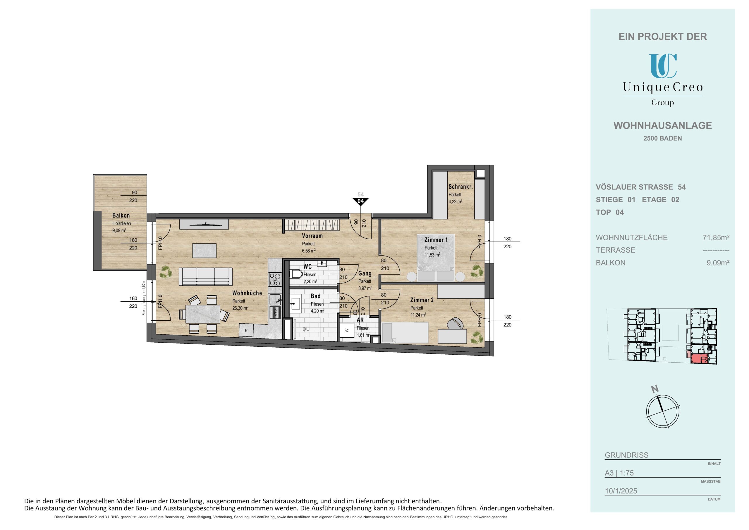 🟢 Top 04/54  Stiege 01 / E02 71,85 m² 9,09 m² 445.111 € JPG