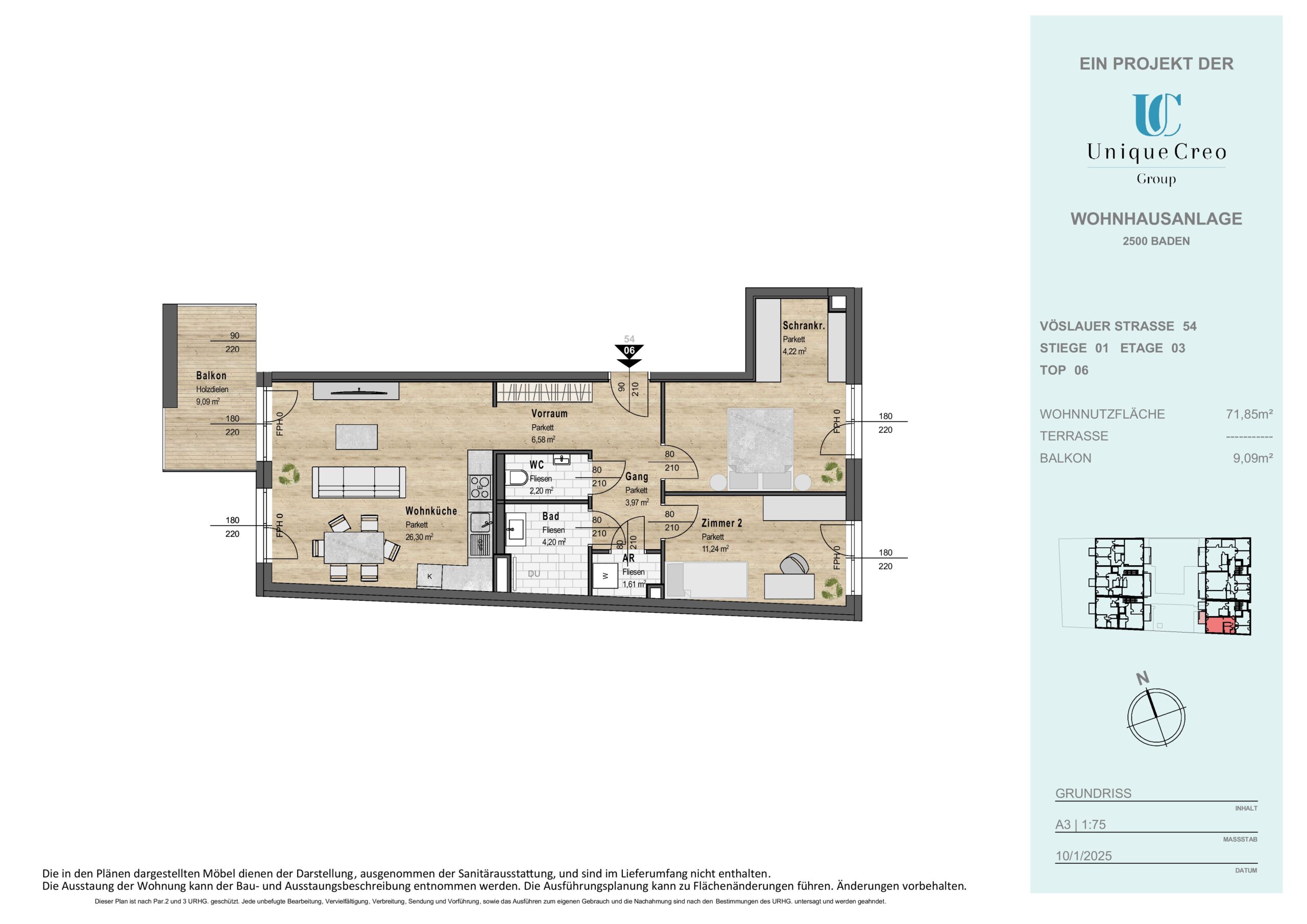 🟢 Top 06/54  Stiege 01 / E03 71,85 m² 9,09 m² 437.567 € JPG