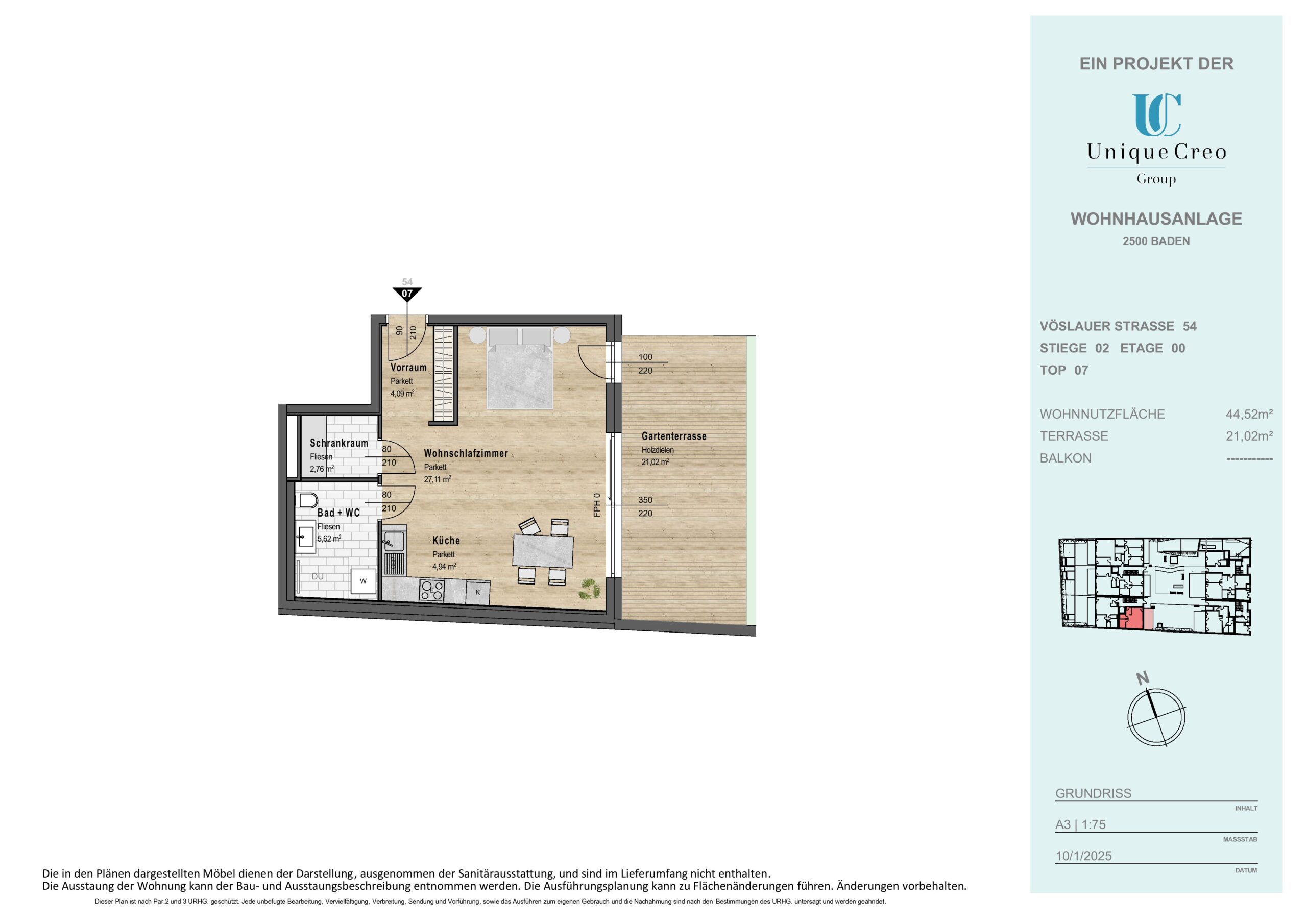 🟢 Top 07/54  Stiege 02 / E00 MIT GARTENFLÄCHE 44,62 m² 21,02 m² 289.825 € JPG