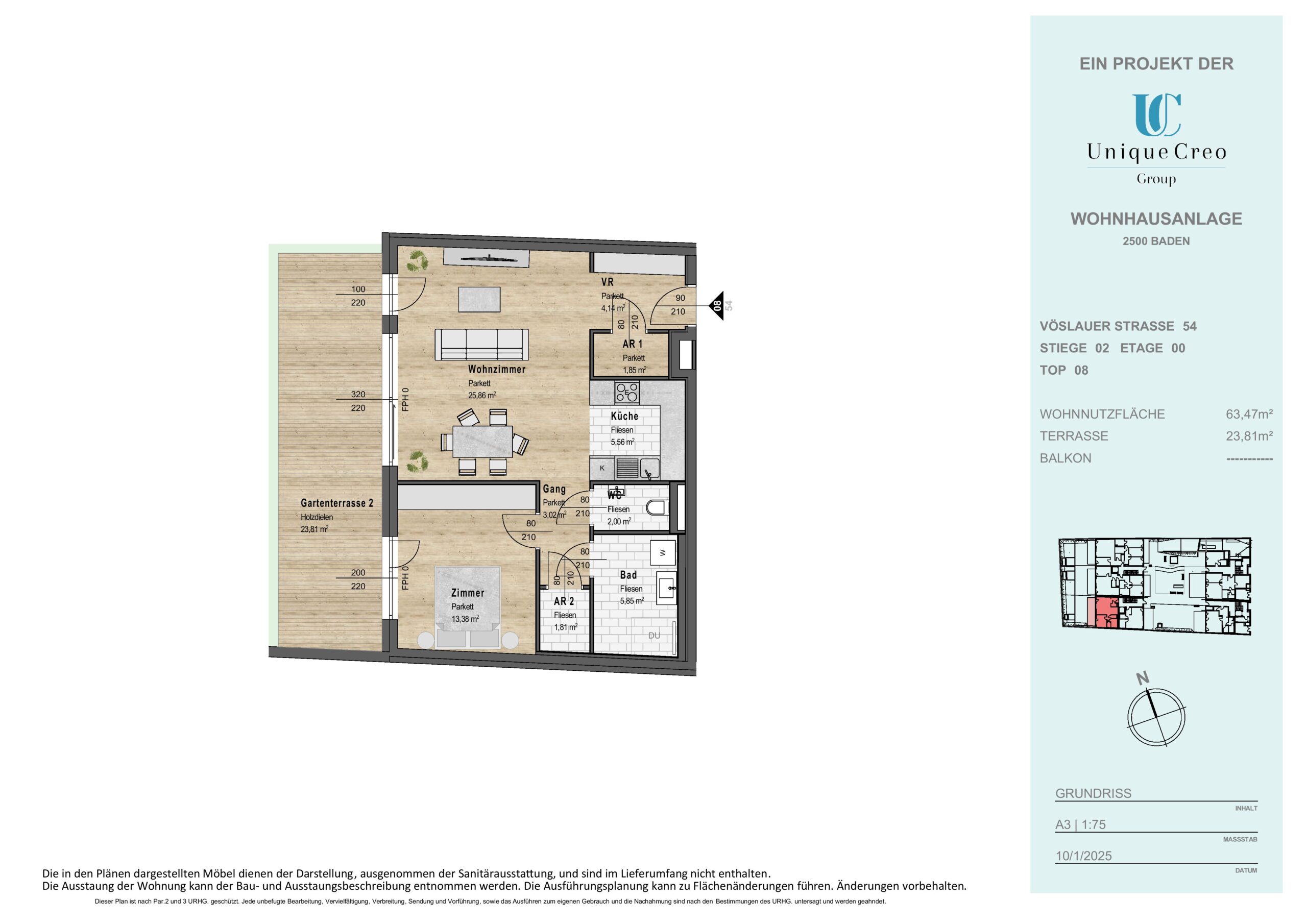 🟢 Top 08/54  Stiege 02 / E00 MIT GARTENFLÄCHE 63,47 m² 23,81 m² 413.190 € JPG