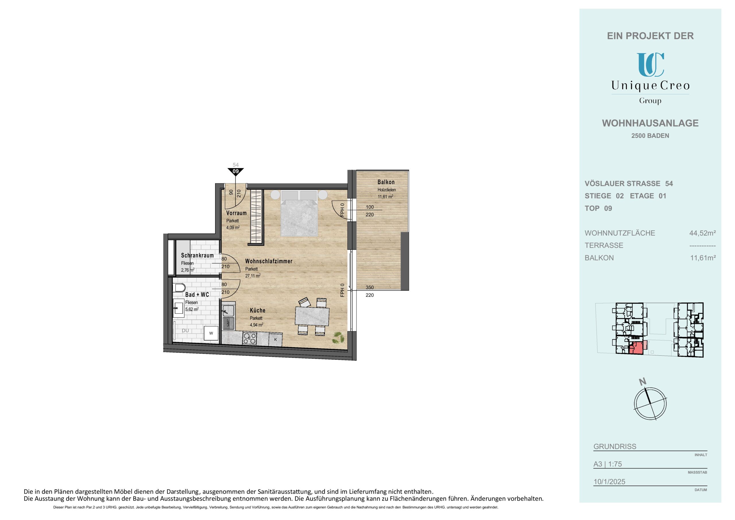 🟢 Top 09/54  Stiege 02 / E01 44,52 m² 11,61 m² 289.825 € JPG
