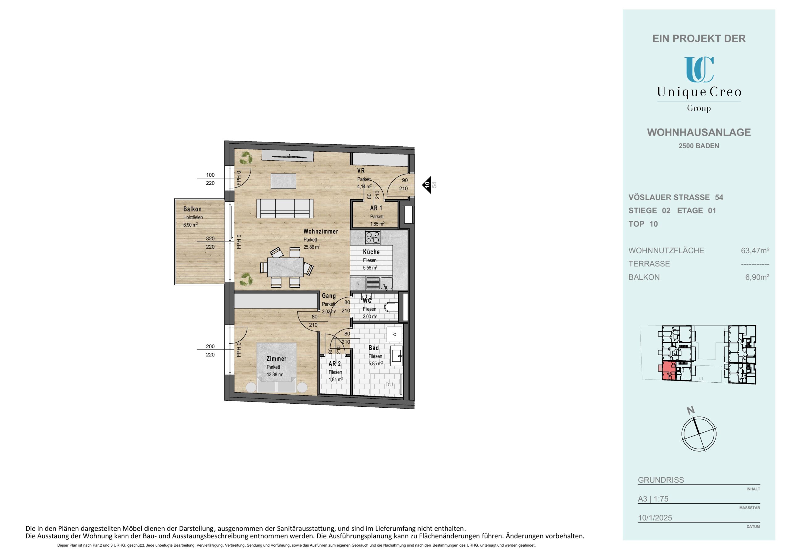 🟢 Top 10/54  Stiege 02 / E01 63,47 m² 6,90 m² 393.197 € JPG