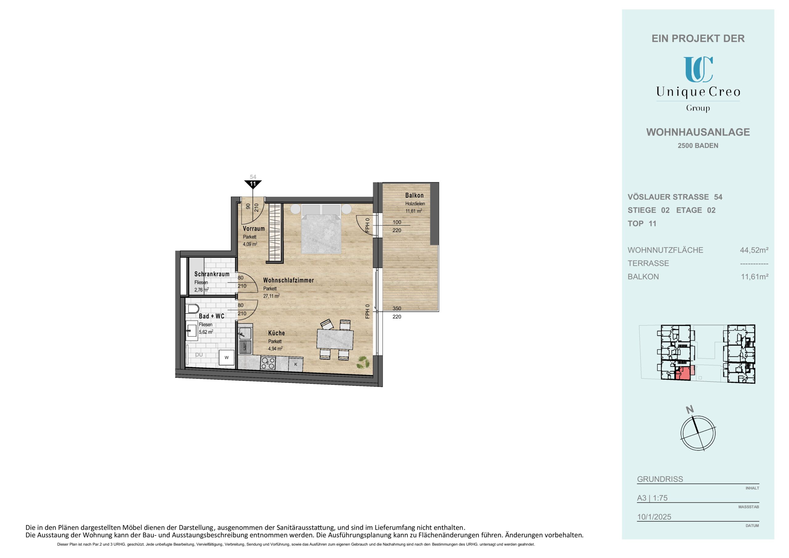 🟢 Top 11/54  Stiege 02 / E02 44,52 m² 11,61 m² 289.825 € JPG