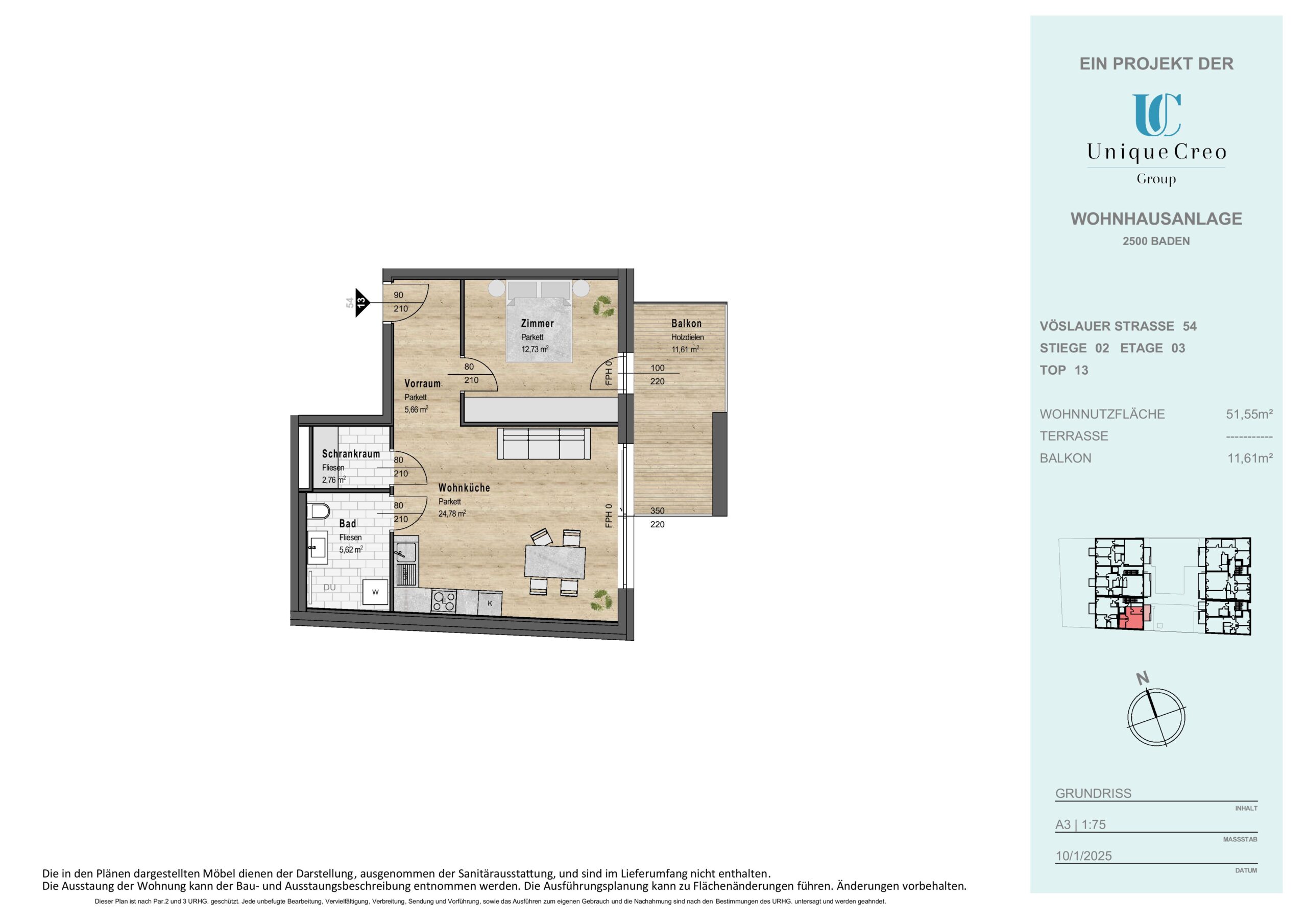 🟢 Top 13/54  Stiege 02 / E03 51,55 m² 11,61 m² 335.590 € JPG